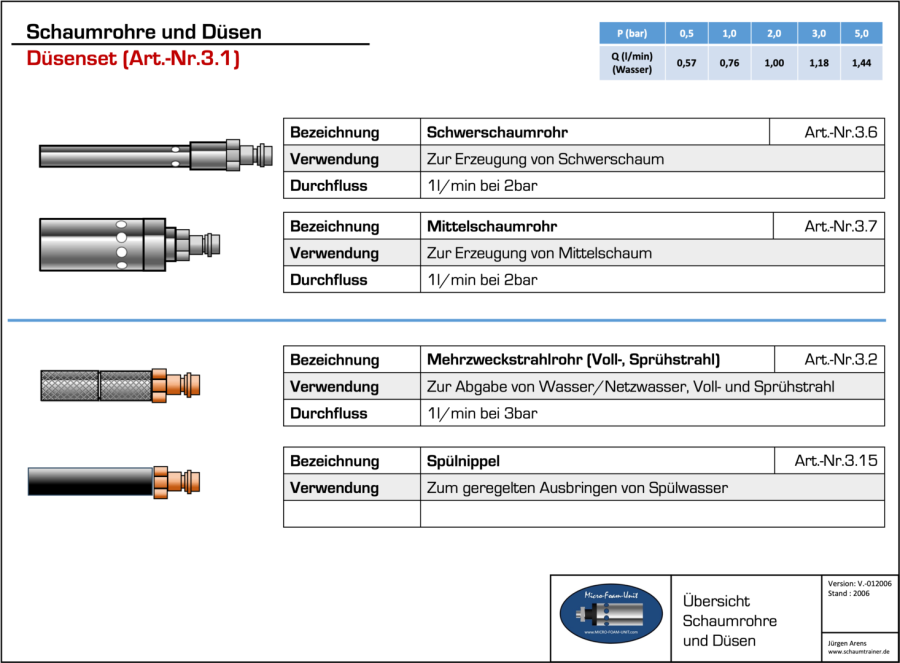 Das Schaumtrainer-Düsenset ist eine Zusammenstellung der gängigen Düsen aus dem Schaumtrainer Programm.