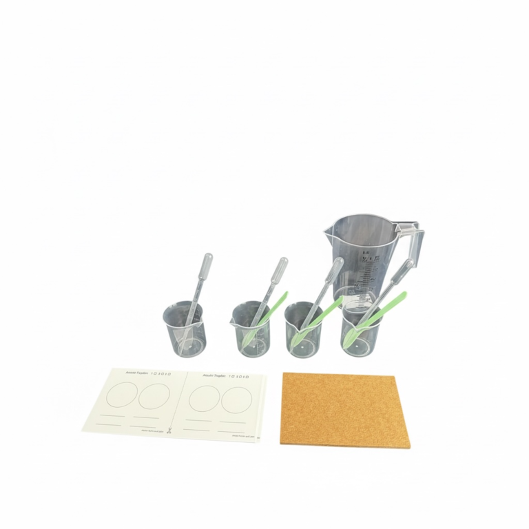 Zur durchführung einfacher Versuche werden zwei Sets angeboten mit denen die Feuerhemmende Wirkung und das Netzvermögen getestet werden kann.